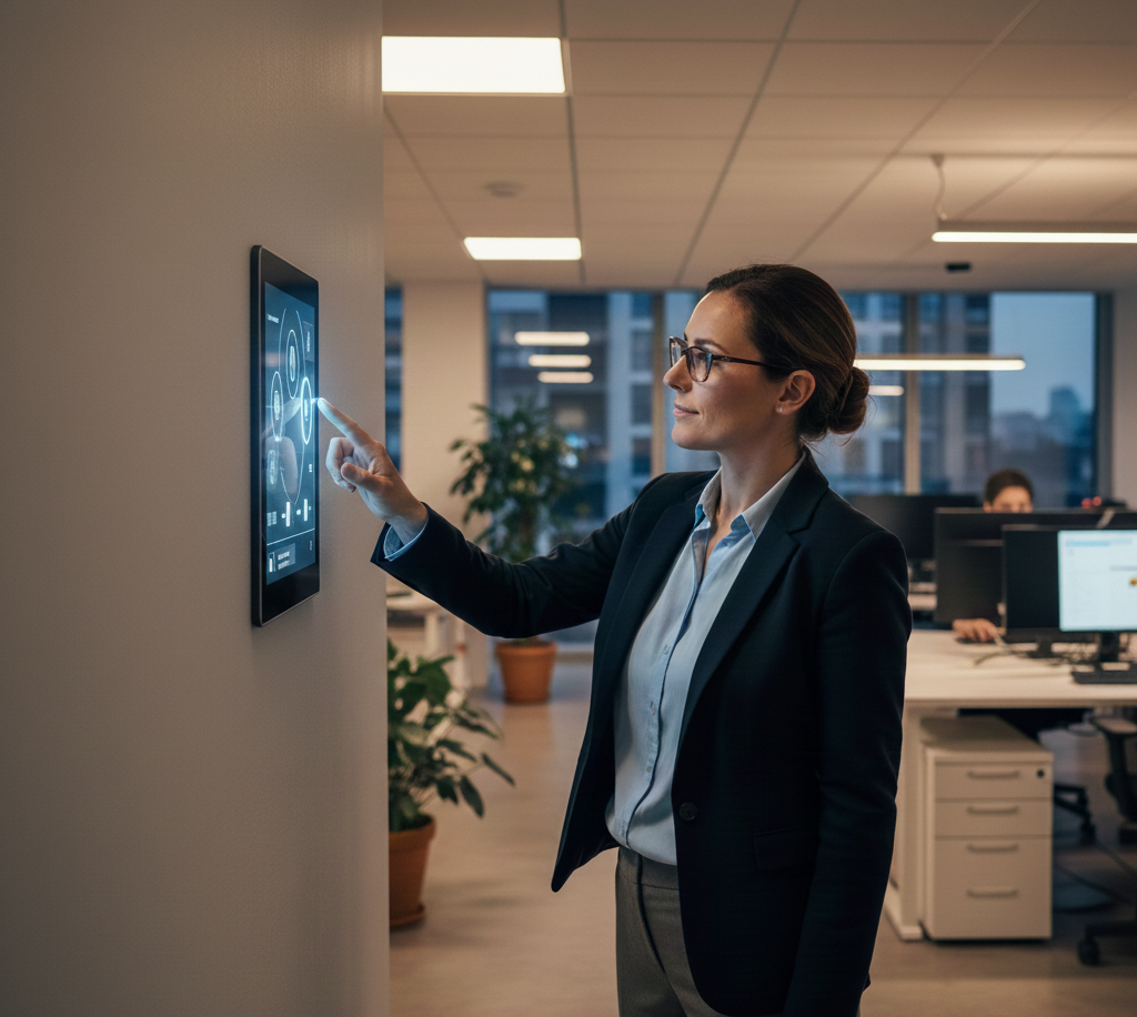 - Control office lighting and electrical systems with a single touch